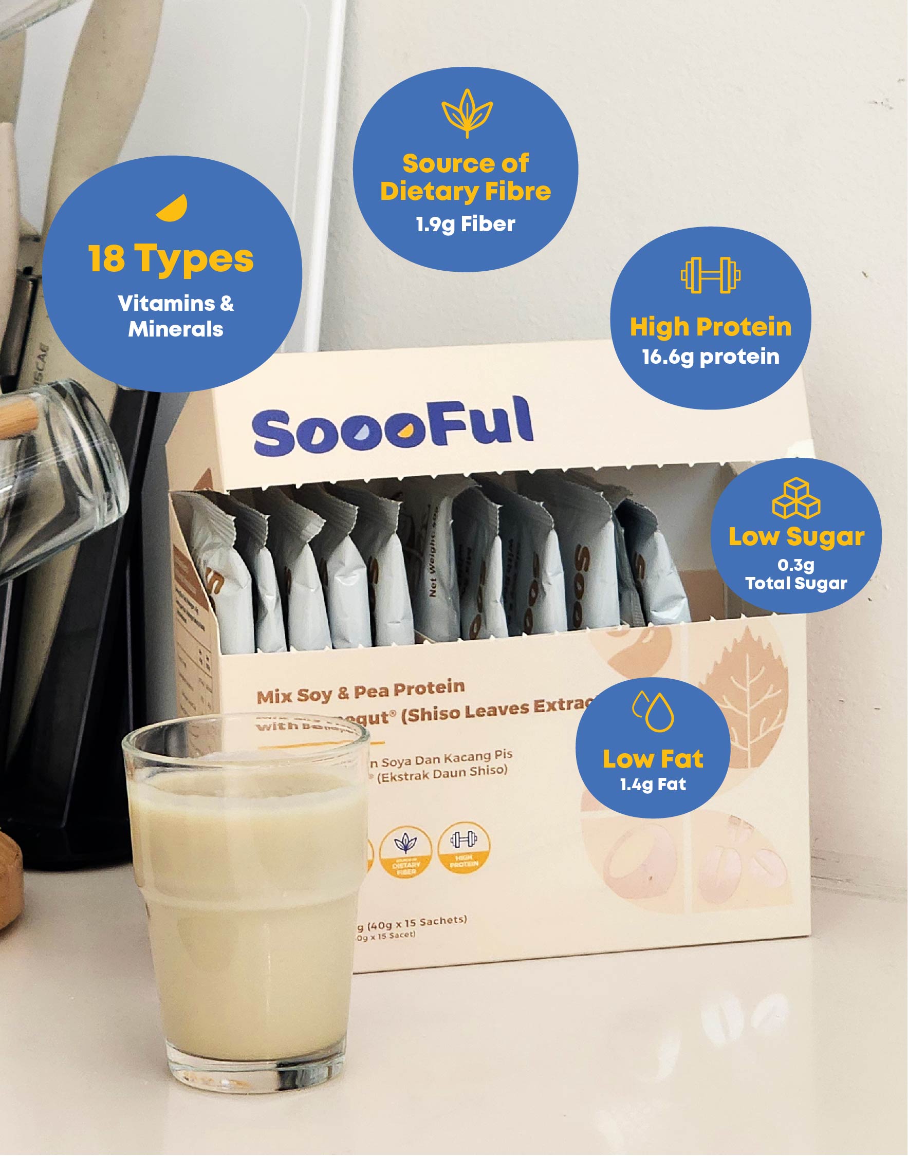 SoooFul Stomach Comfort Meal Replacement: Mix Soy & Pea Protein with Benegut® (15's)